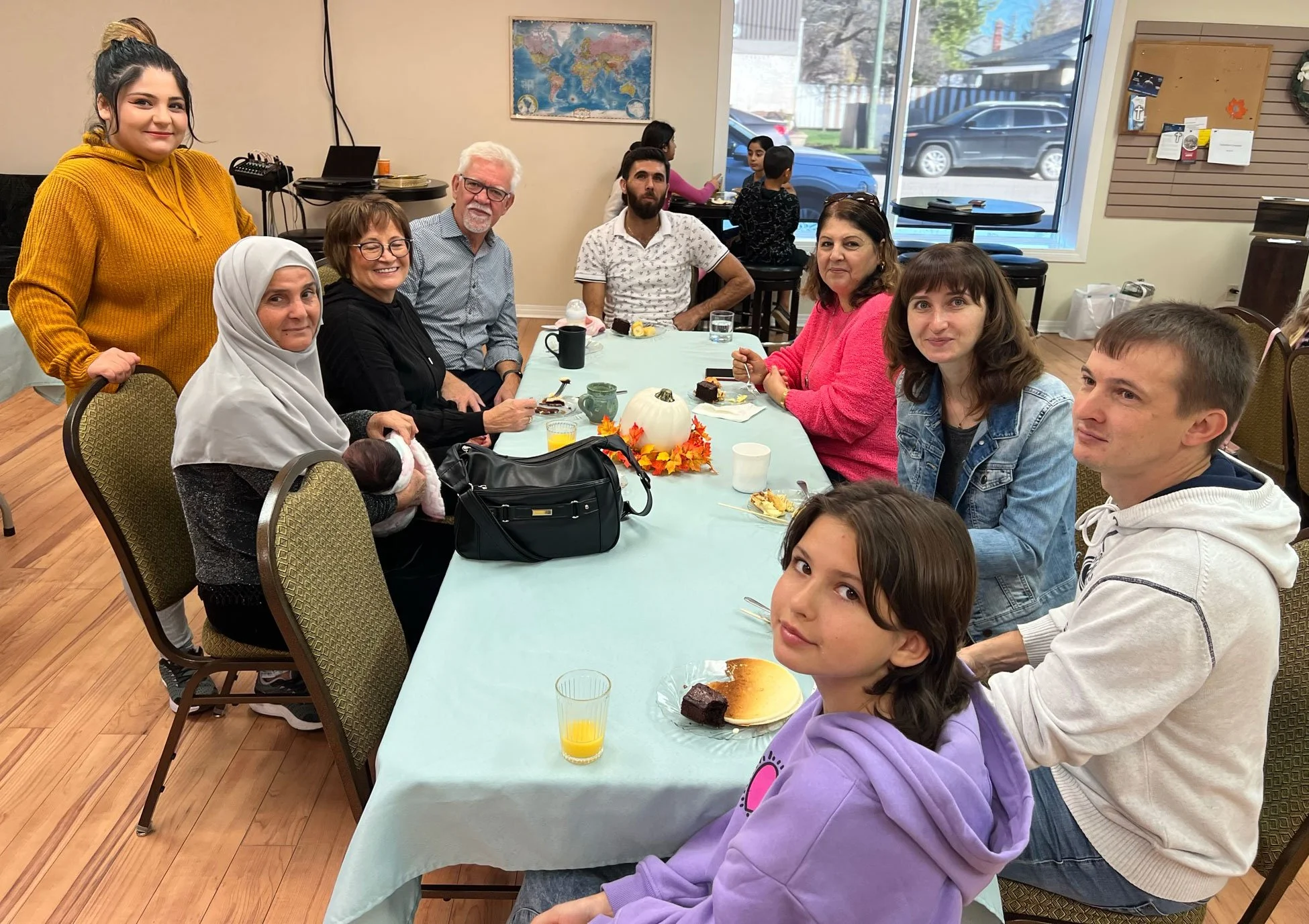 We can behold the beauty of the mosaic that the Creator has crafted: people from Syria with their hijabs and accents rooted in their mother tongue (Kurdish), talking with people from Ukraine, searching in English for a common point to understand each other. At another table, we see someone from Kenya laughing during a chat with some Canadians and Brazilians.