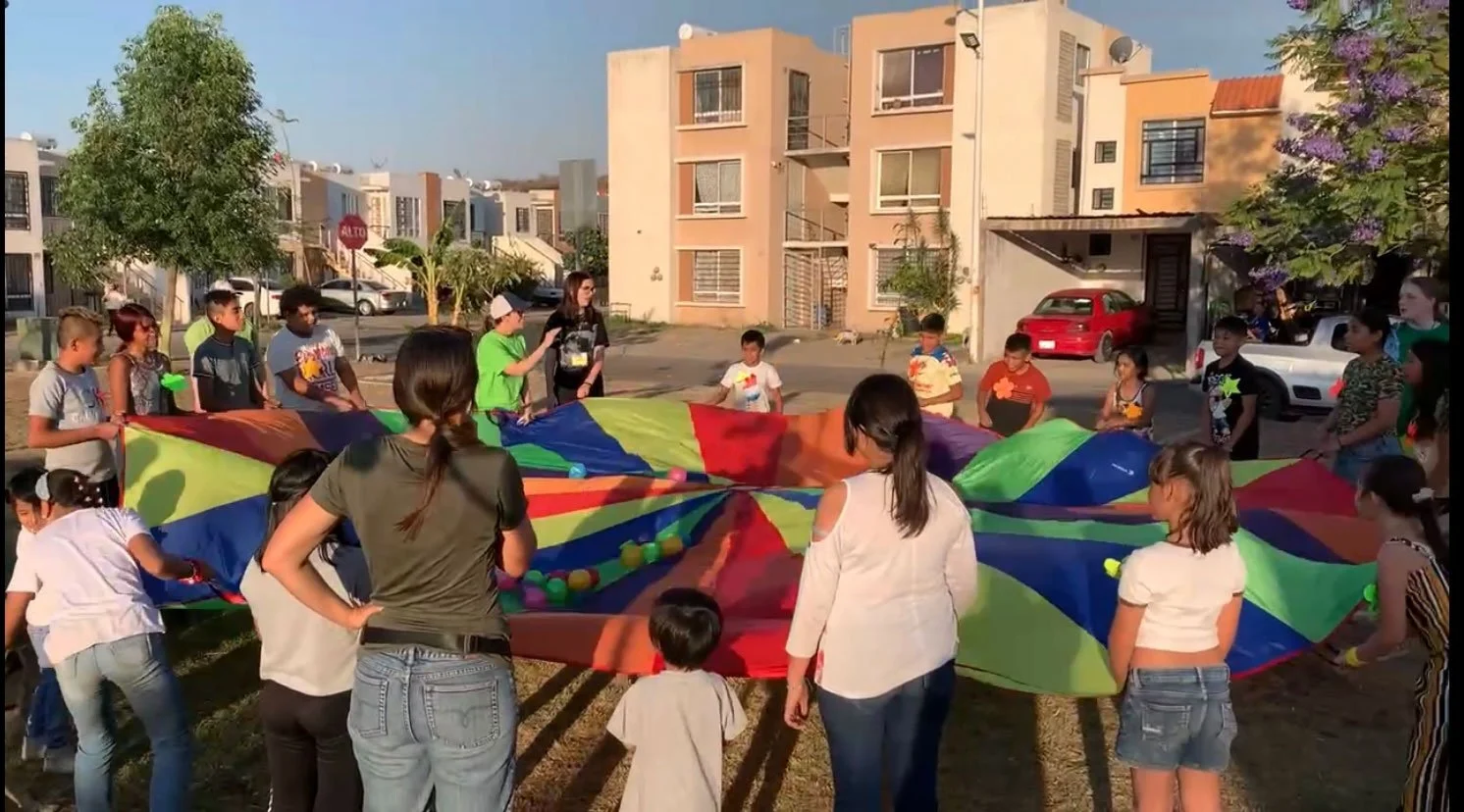 A multi-generational team from Kola EMC ran an English program for children in Guadalajara, which included parachute games.